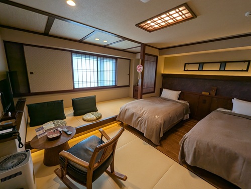 部屋は5階の市街側 温泉付きツインルーム。