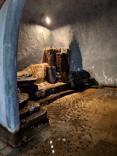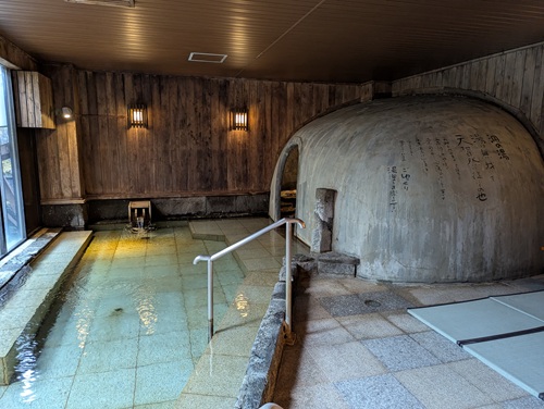 右のドームは温泉の蒸気を利用した蒸し風呂です。