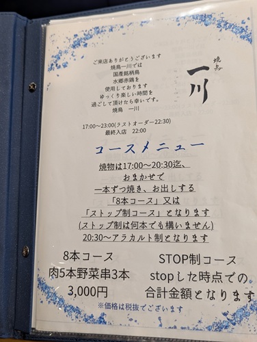 千葉県市川市にある焼鳥屋さん「焼鳥 一川」