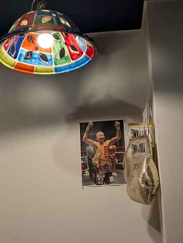 入口にボクサーの写真とグローブが飾られていました。