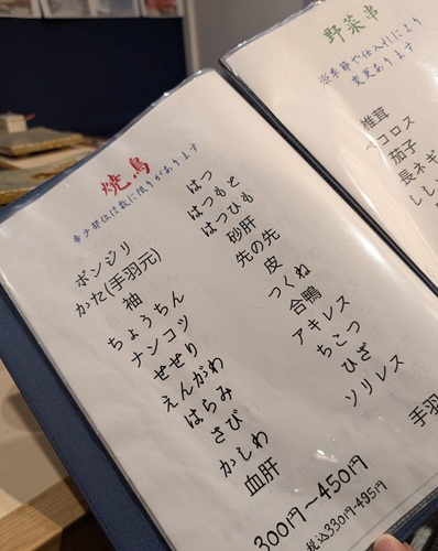 結局、焼き鳥メニュー24種類のうち11種類を頂きました。