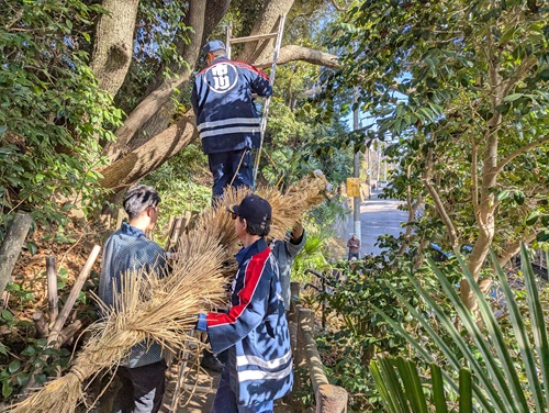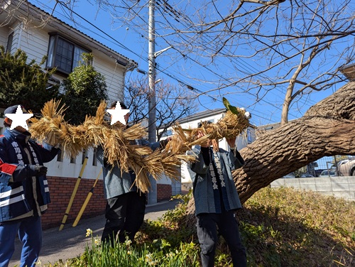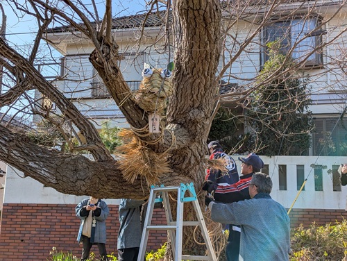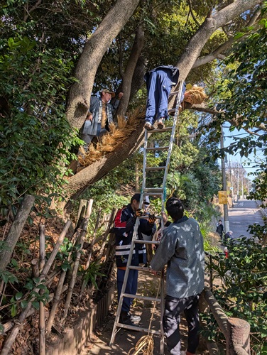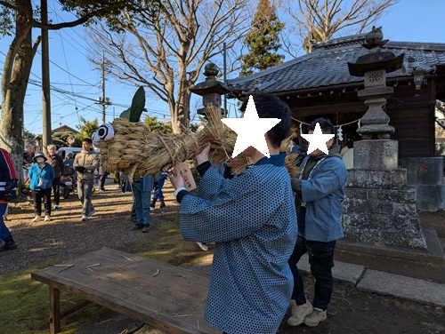 国府台では町の東西南北の木に結びつけられたワラの大蛇が、悪霊の侵入を防ぎ町内を護っています。