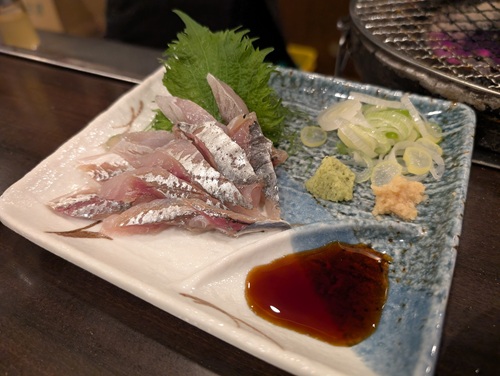 焼肉屋には珍しい鰺刺し(600円)