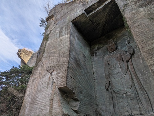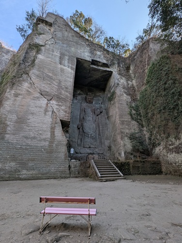 戦死者や交通事故犠牲者の供養のため、石切場跡に6年の歳月をかけて彫られ1966年に完成しました。