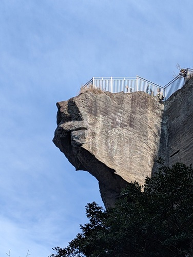 かつては左側の木に覆われた岩と繋がっていたそう。